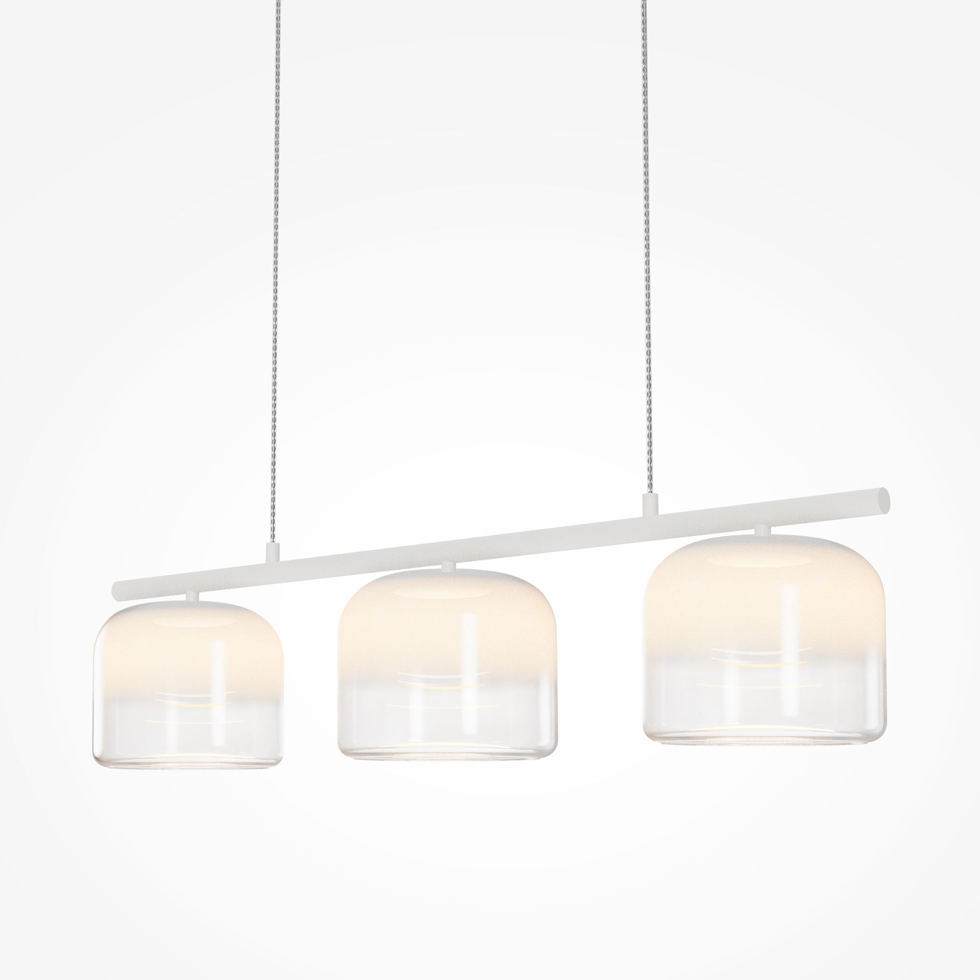 Материал арматуры и плафонов — литое стекло, цвет — градиентный черный, золотой и белый. Фактура поверхностей гладкая. Источник света: LED. Цветовая температура светильника 3000К, угол рассеивания света 120°. На проводе расположен тач-сенсор, при длительном нажатии световой поток меняет свою мощность (диммируется). Отражаясь от стекла, свет стремится вниз, создавая визуальный эффект парения плафона в воздухе.