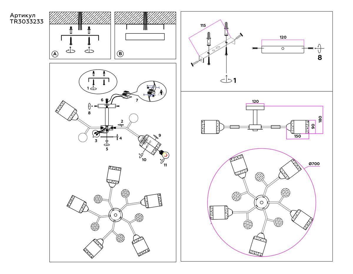 - Место установки: на потолок