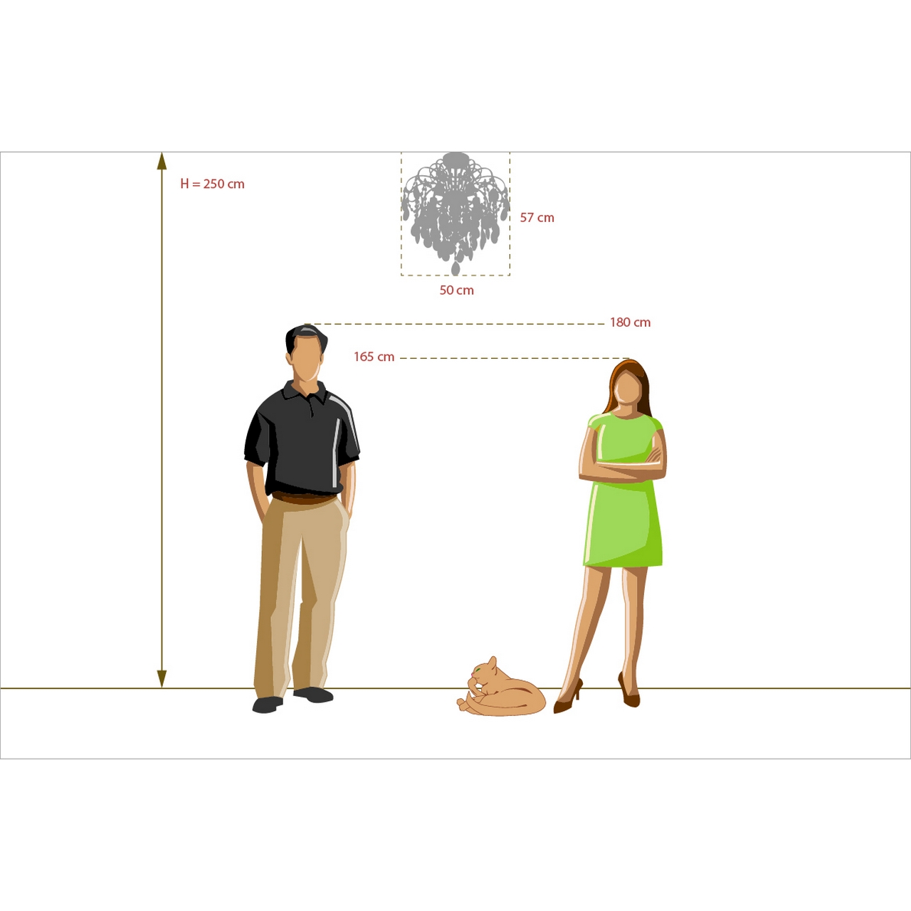 Люстра имеет высоту 57 см, поэтому она подходит для помещений с потолками не ниже 270 см.
