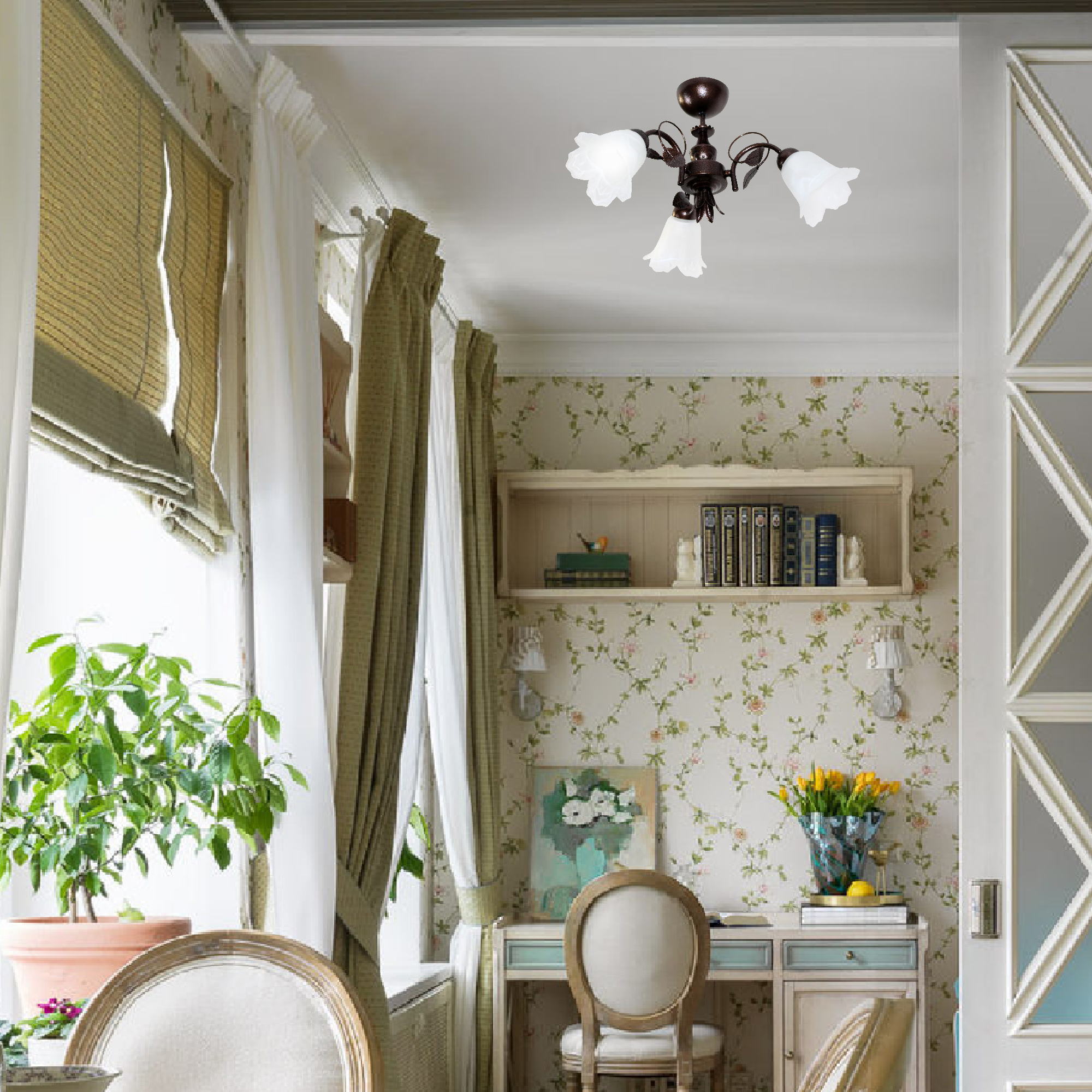 - Декор плафона: Цветы