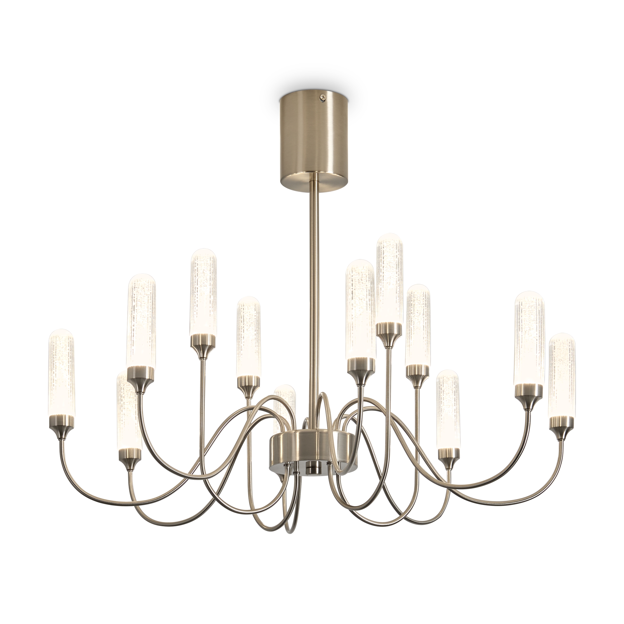 Арматура - металл в цвете латунь и никель. Основной акцент в дизайне люстр Alias сделан на акриловые плафоны, эффект пузырьков. Встроенный LED модуль 2700K. 2 дизайна подвесных светильников.