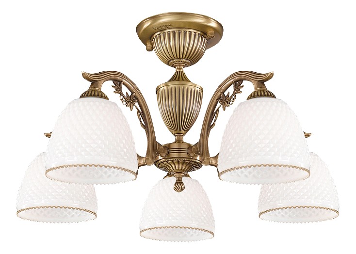 Потолочная люстра Reccagni Angelo PL 8621/5 Итальянского производсва – уникальное сочетание высокого качества и удивительных фактур. Этот светильник Классического стиля хорошо подойдет Для спальни и придаст помещению мягкий и приятный свет. Плафоны белые из стекла. Арматура бронза из металла. Кол-во ламп - 5шт. Общая мощность 300W