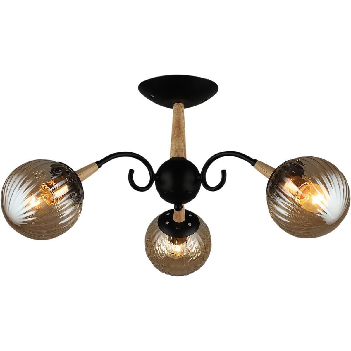 Потолочная люстра Reluce 04886-0. 3-03 BK+WOOD в Зеленодольске
