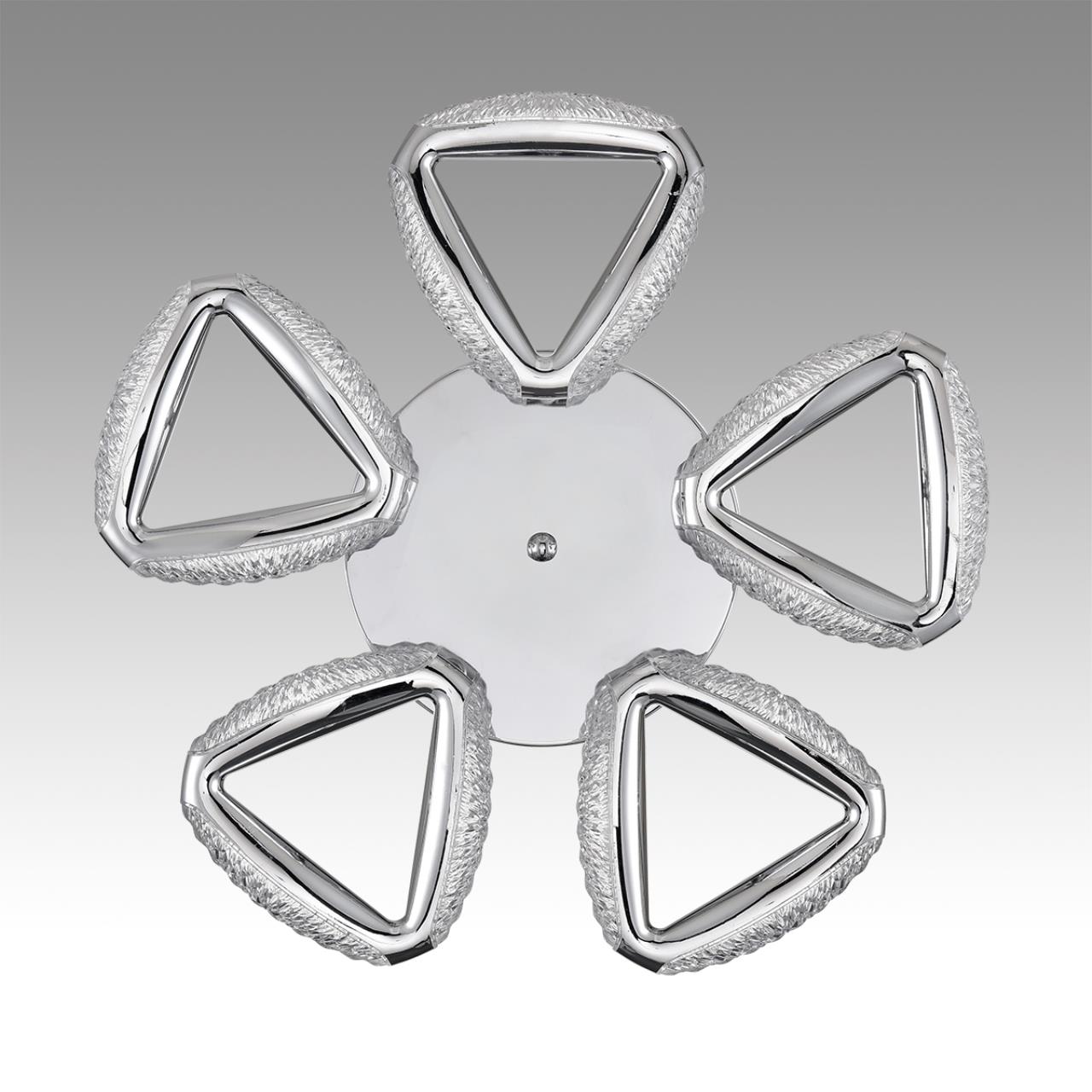 Лаконичная и в тоже время роскошная серия RUANA дополнит интерьер в стиле минимализм или хайтек. Данная серия люстр облегчена за счет пластиковых хромированных рожков. Треугольная форма плафонов очень элегантно собирается в круг. Рассеиватель декорирован во внутренней части акриловой крошкой, что во включенном состоянии добавляет еще больше блеска.