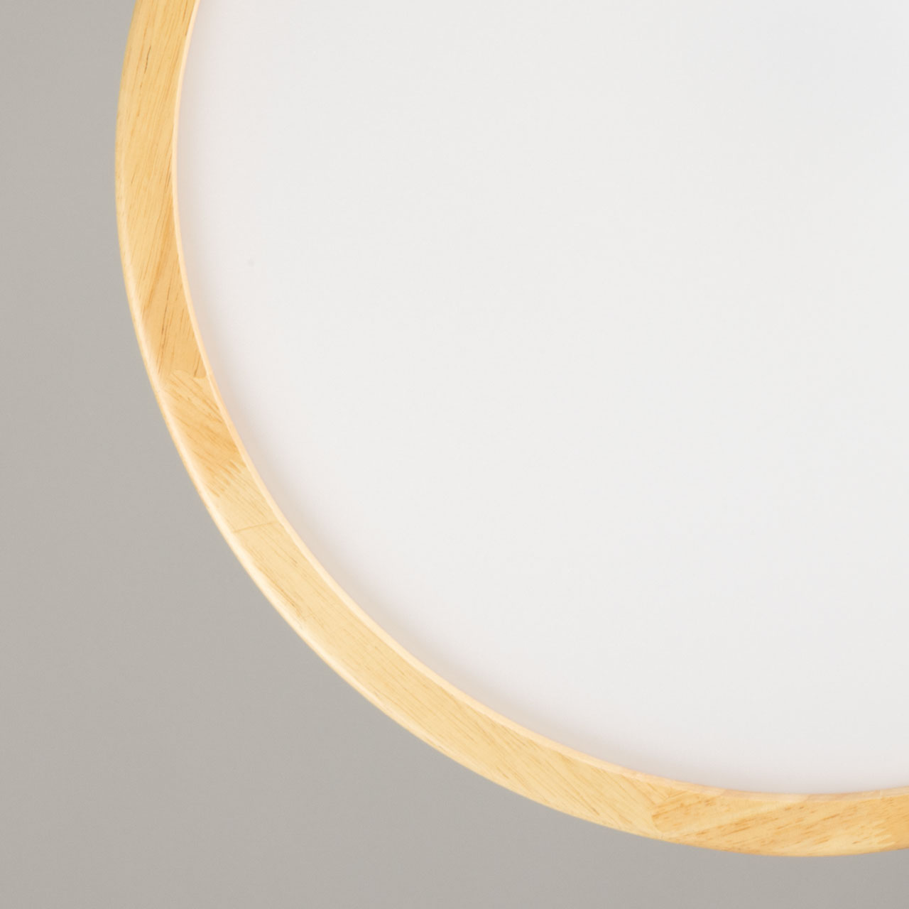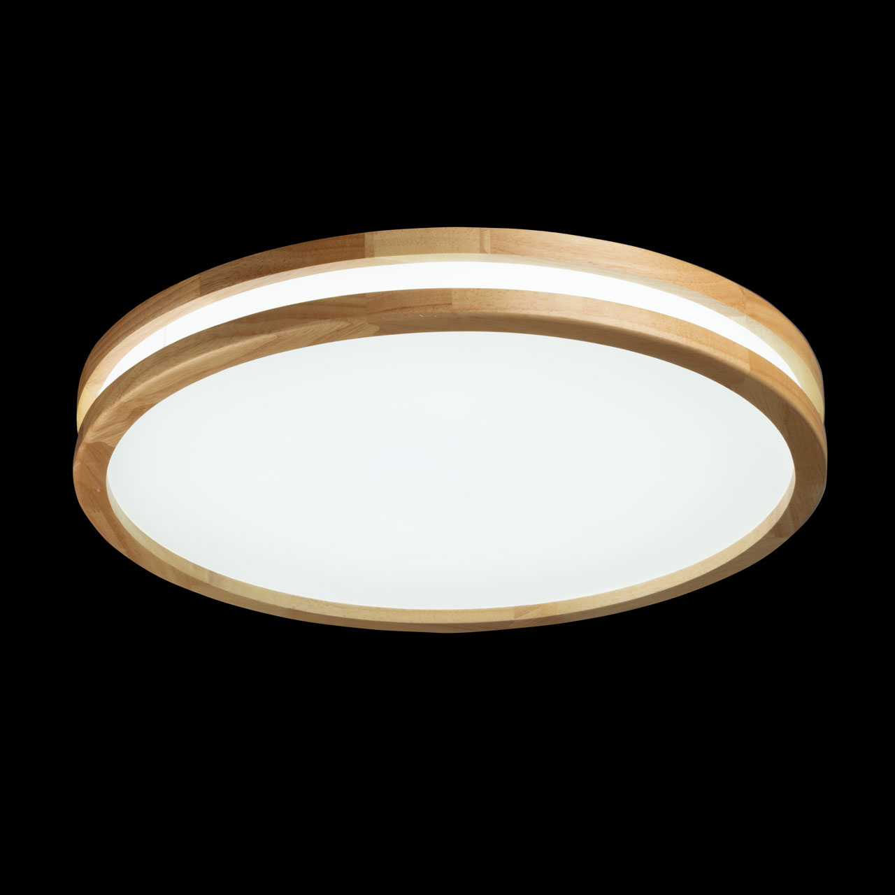 Металлическое основание светильника окрашено в белый цвет. Плафон выполнен из натурального дерева. Светодиодные источники света закрыты белым матовым акрилом.