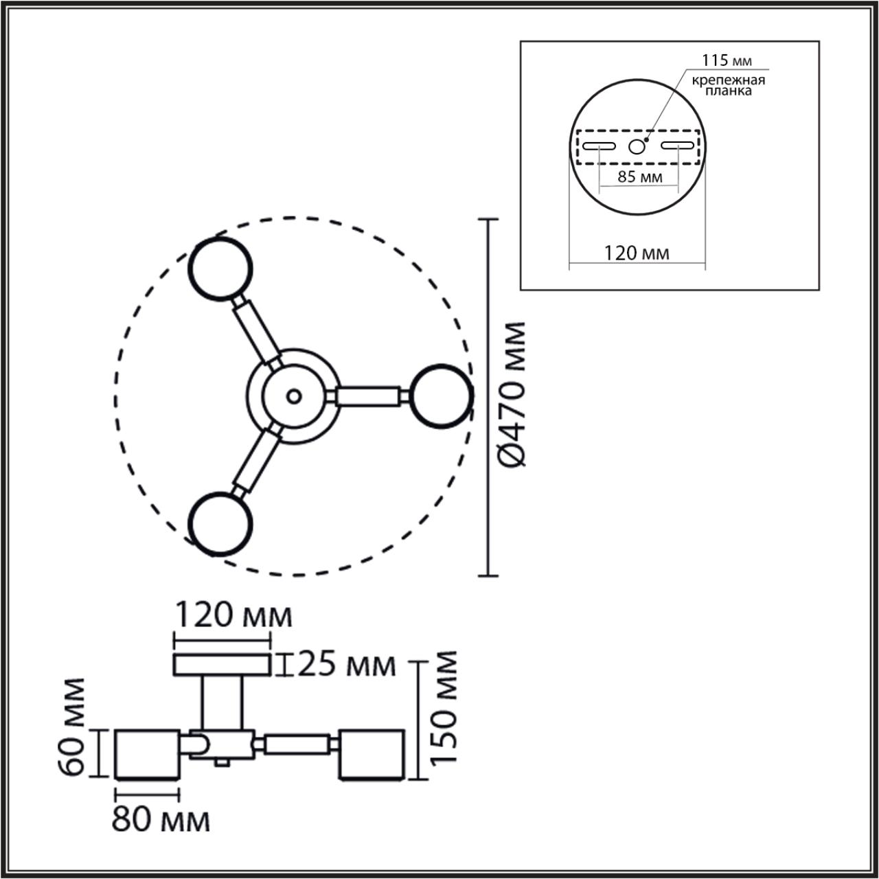 - Количество ламп: 3 шт