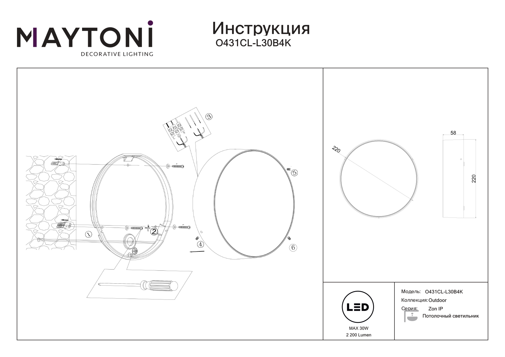 - Световой поток, lm: 2200