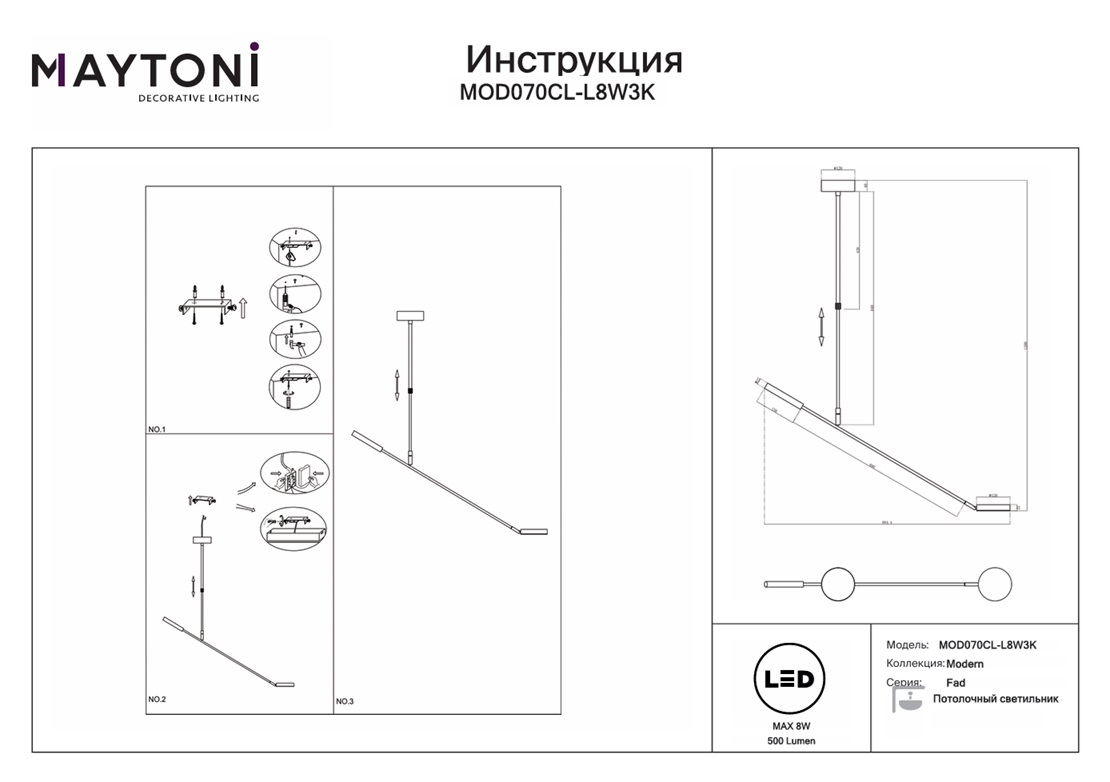 Данную модель MOD070CL-L8W3K с быстрой доставкой спешите купить по цене 8 245 ₽ в магазине 220svet.ru