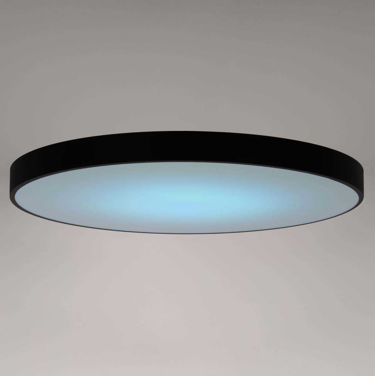 Светодиодный потолочный светильник CL724155G1 от производителя Citilux принадлежит к коллекции Купер с яркой цветной RGB подсветкой всего плафона. Корпус металлический плоский круглой формы, цвет чёрный матовый, рассеиватель из оптического полимера. С помощью пульта доступно: плавная регулировка яркости от 10 до 100%, управление цветовой температурой от 3000К до 5500К позволяет настроить любые оттенки теплого, нейтрального или холодного света. Цветная RGB подсветка имеет различные режимы работы. Есть функция отсроченного выключения, 4 настраиваемых режима памяти, которыми также можно управлять настенным выключателем. Пульт ДУ в комплекте, тип батареек ААА (батарейки в комплект не входят, приобретаются отдельно). Подходит для всех типов потолков, в том числе натяжных. Тип крепления – через основание. Мощность изделия 155Вт, световой поток 13000Лм , страна бренда Дания . Купить модель CL724155G1 спешите в интернет магазине 220svet.ru
