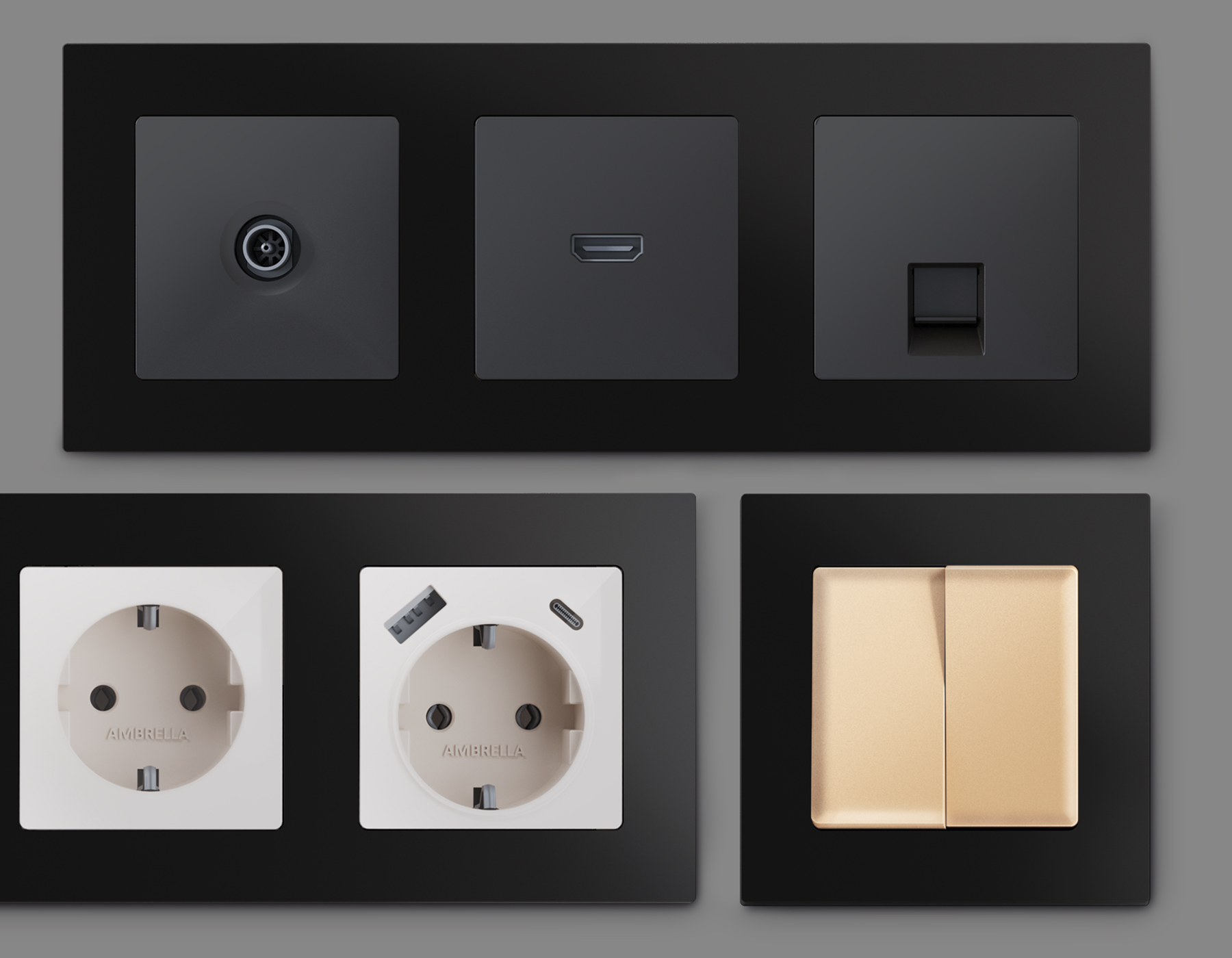 Многогранный ассортимент Ambrella Volt включает в себя механизмы, лицевые панели и рамки, а также комплекты, доступные в различных цветовых решениях. Продукция представлена в модульном исполнении, что позволяет гибко настраивать внешнийвид и функциональность. Вам будет легко заменить лицевую панель, рамку или механизм, найдя идеальное сочетание цветов.