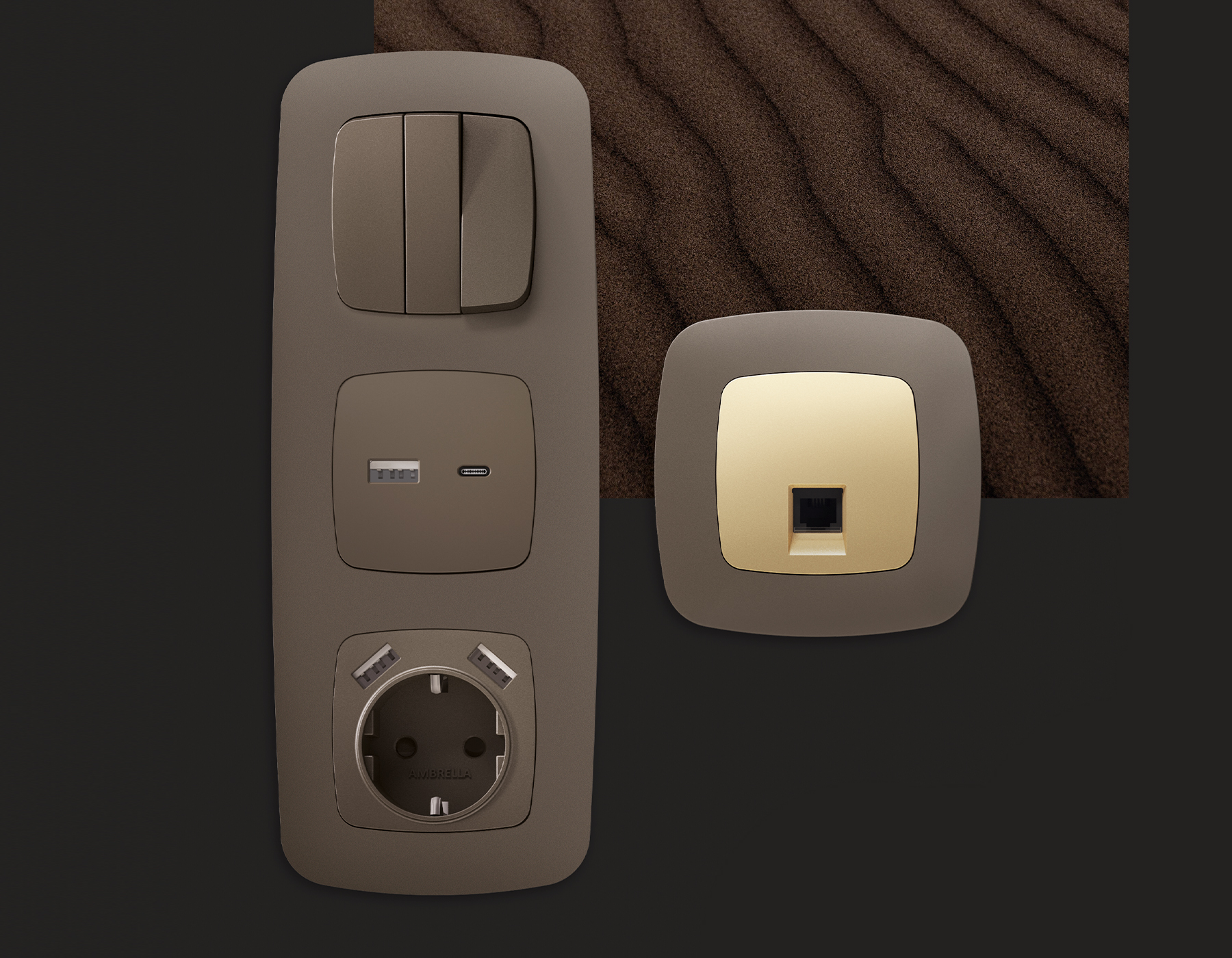 Многогранный ассортимент Ambrella Volt включает в себя механизмы, лицевые панели и рамки, а также комплекты, доступные в различных цветовых решениях. Продукция представлена в модульном исполнении, что позволяет гибко настраивать внешнийвид и функциональность. Вам будет легко заменить лицевую панель, рамку или механизм, найдя идеальное сочетание цветов.