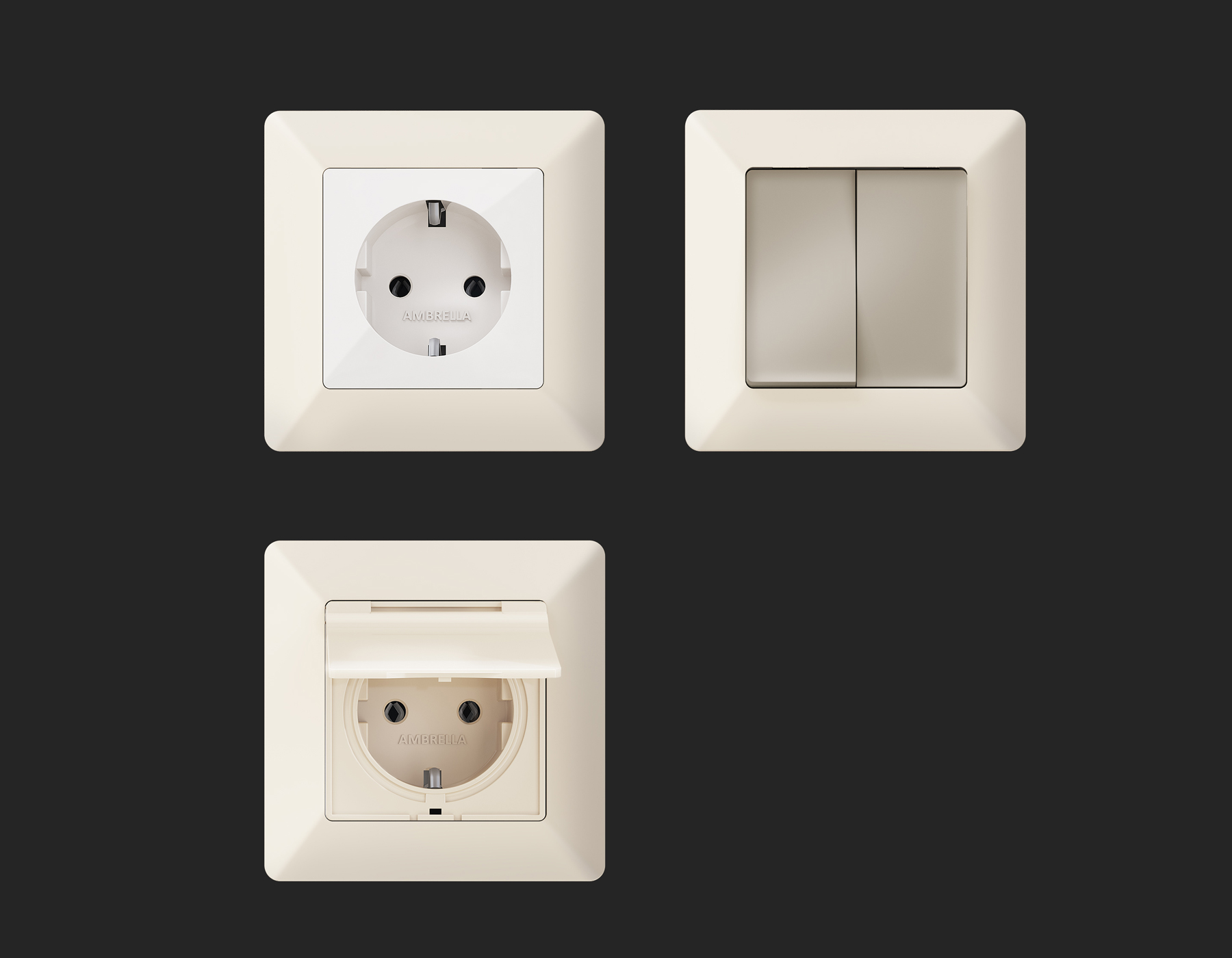 Многогранный ассортимент Ambrella Volt включает в себя механизмы, лицевые панели и рамки, а также комплекты, доступные в различных цветовых решениях. Продукция представлена в модульном исполнении, что позволяет гибко настраивать внешнийвид и функциональность. Вам будет легко заменить лицевую панель, рамку или механизм, найдя идеальное сочетание цветов.