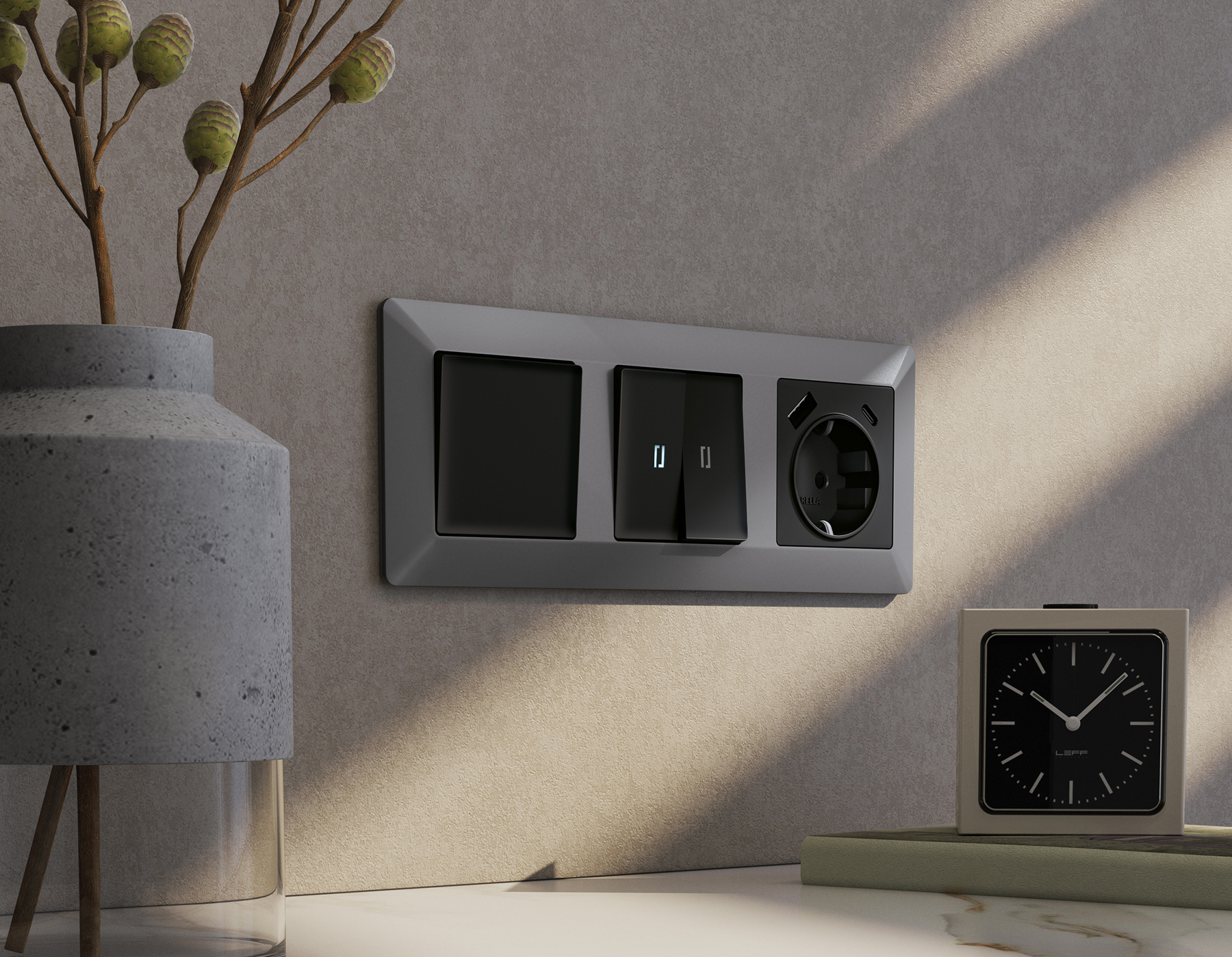 Многогранный ассортимент Ambrella Volt включает в себя механизмы, лицевые панели и рамки, а также комплекты, доступные в различных цветовых решениях. Продукция представлена в модульном исполнении, что позволяет гибко настраивать внешнийвид и функциональность. Вам будет легко заменить лицевую панель, рамку или механизм, найдя идеальное сочетание цветов.