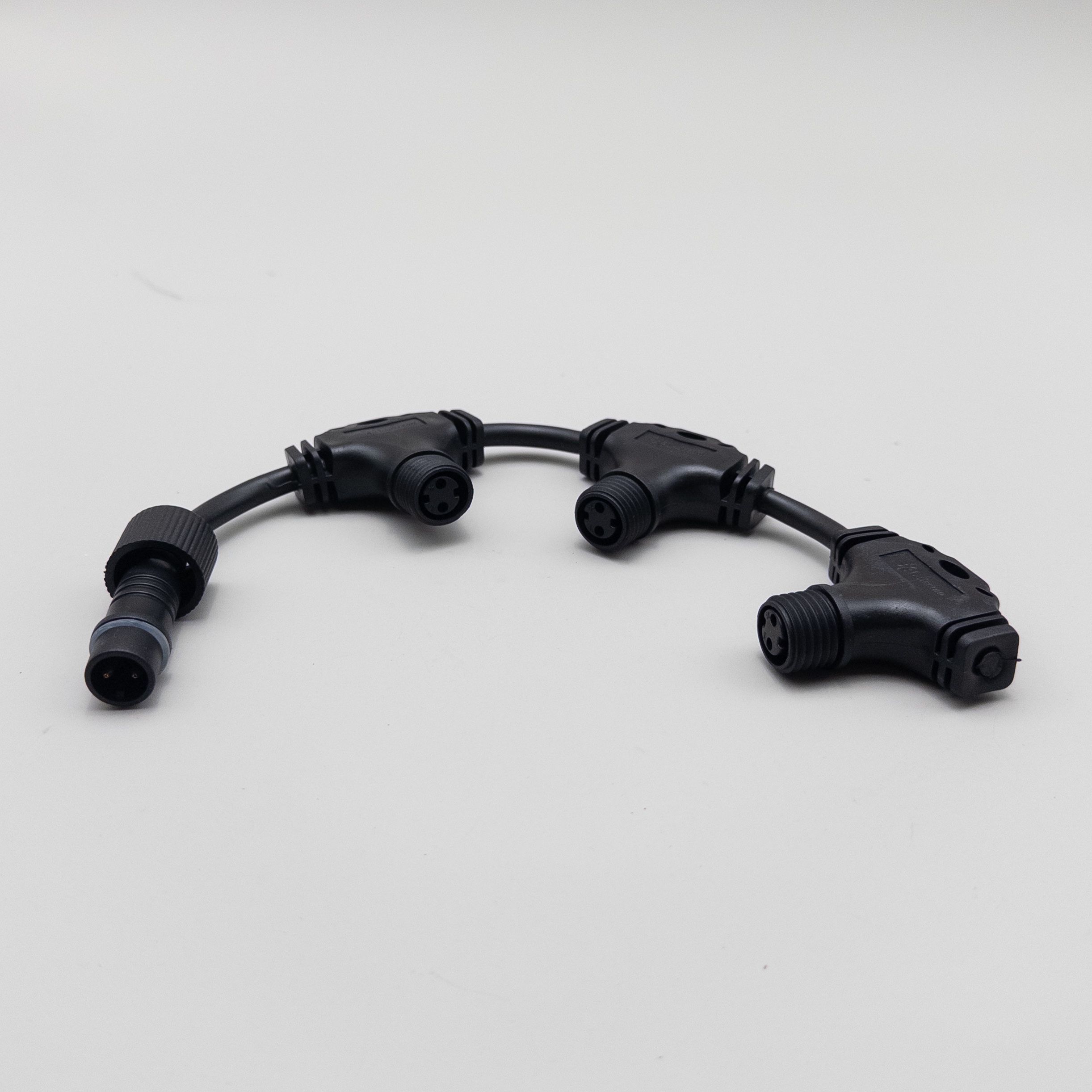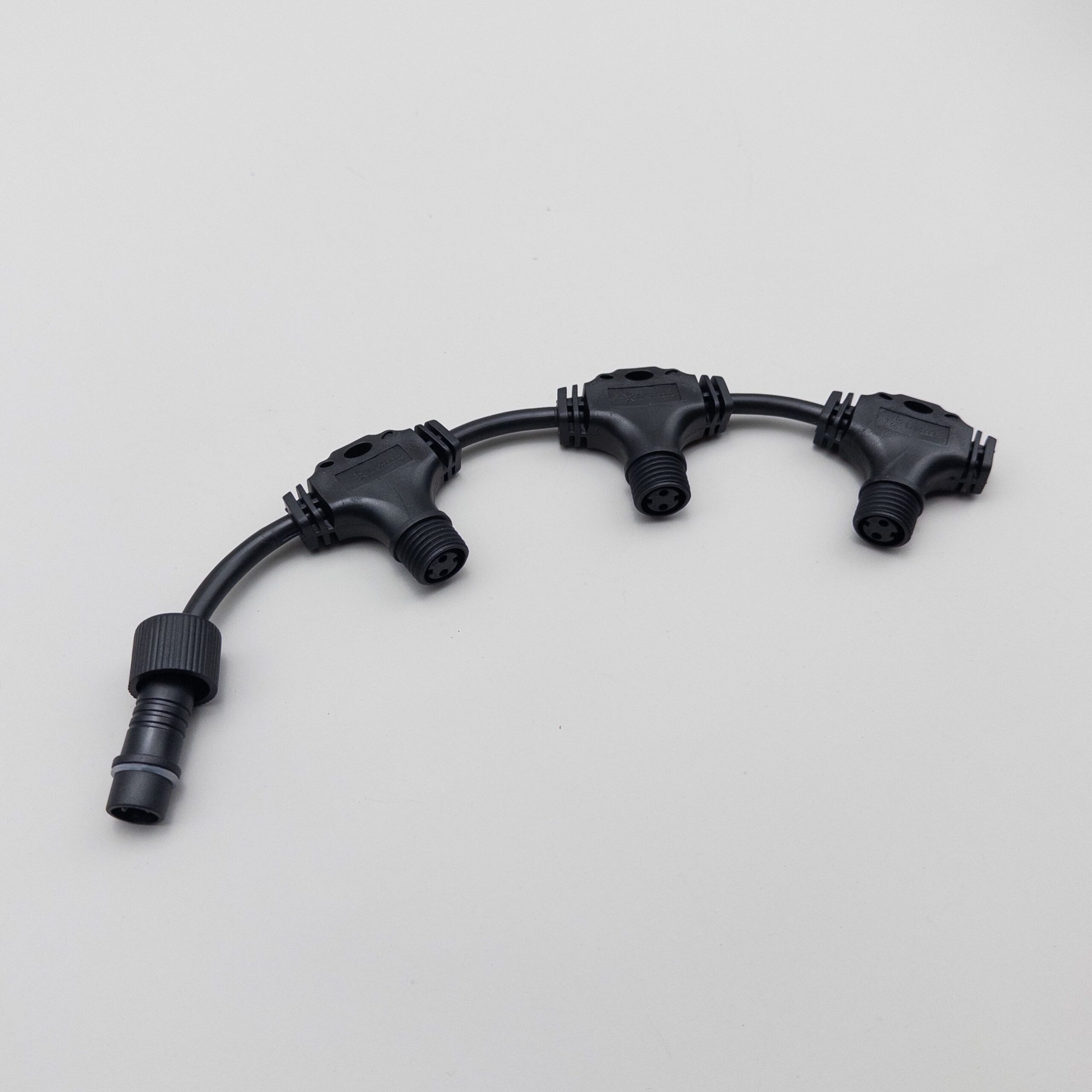 Купить "Разветвитель 3-х Лучевой для Бахромы, Занавесов и Нитей 220В без Возможности Управления, Провод Черный Каучук, IP65 LTC LLR3-1"