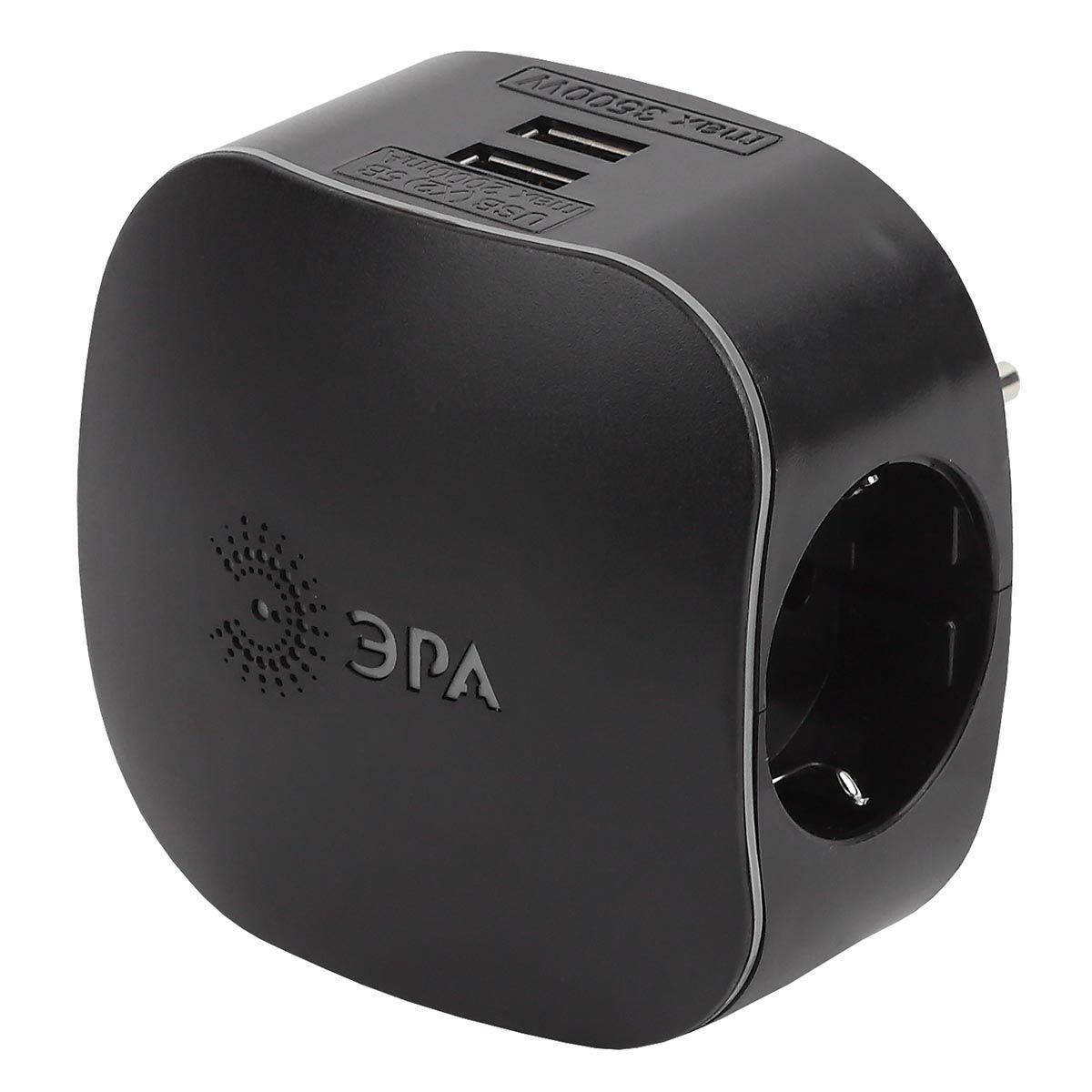 Купить "Сетевой разветвитель ЭРА 2xUSB SP-3e-USB-Black Б0046364"