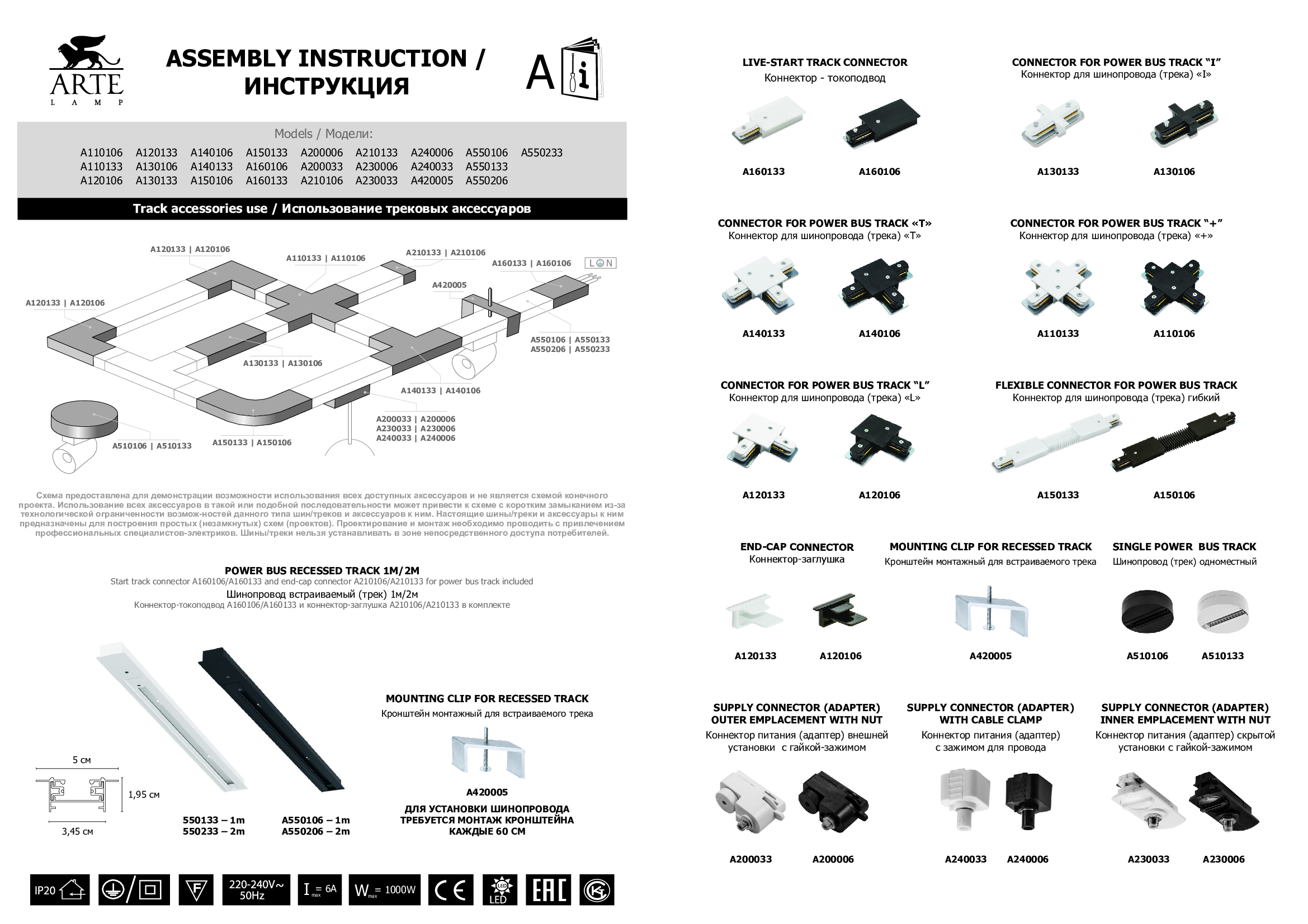 Купить "Шинопровод встраиваемый однофазный Arte Lamp Track Accessories A550233"