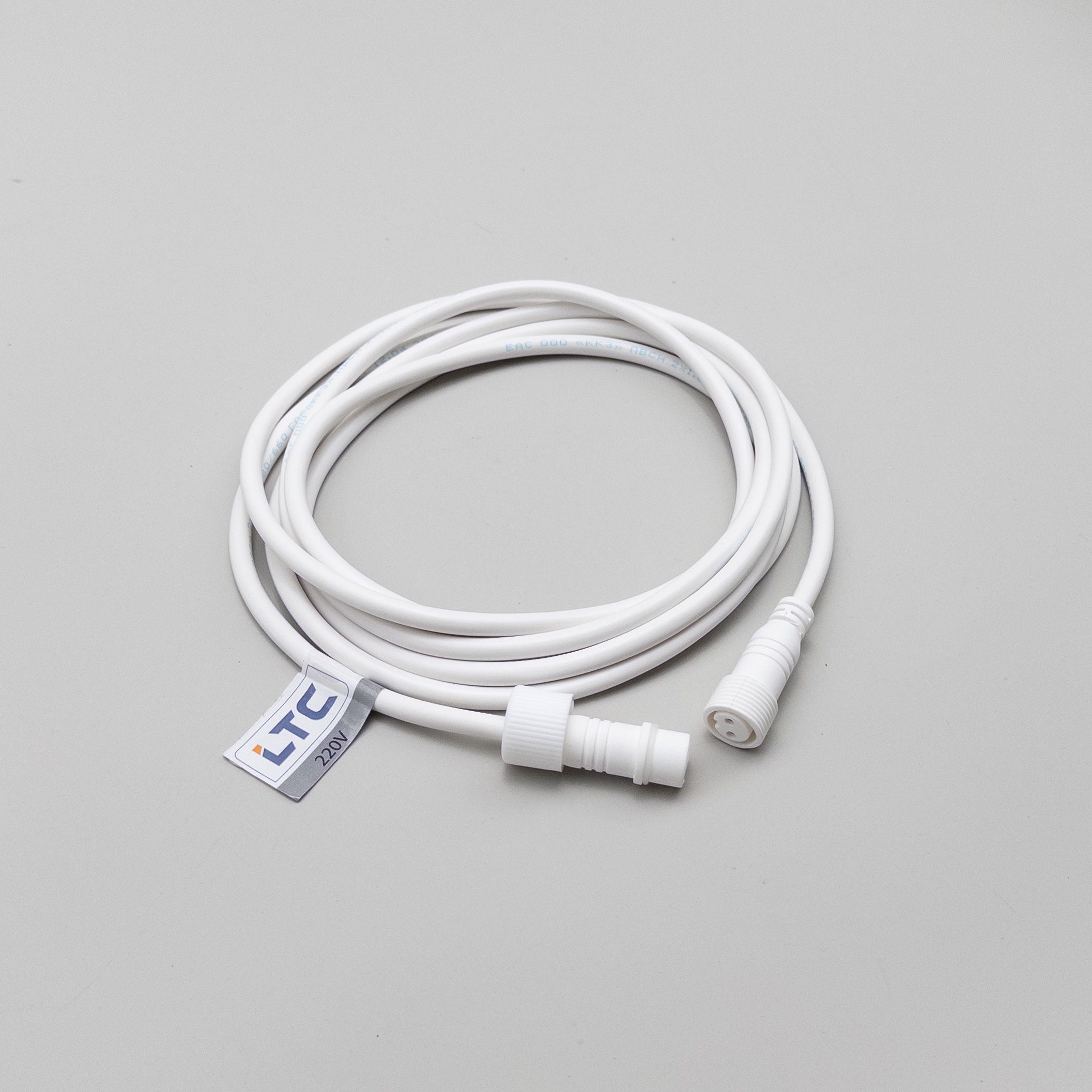 Соединитель 3м для Бахромы, Занавесов и Нитей 220В, Провод Белый Каучук, IP65 LTC LLS-8-3M в Зеленодольске
