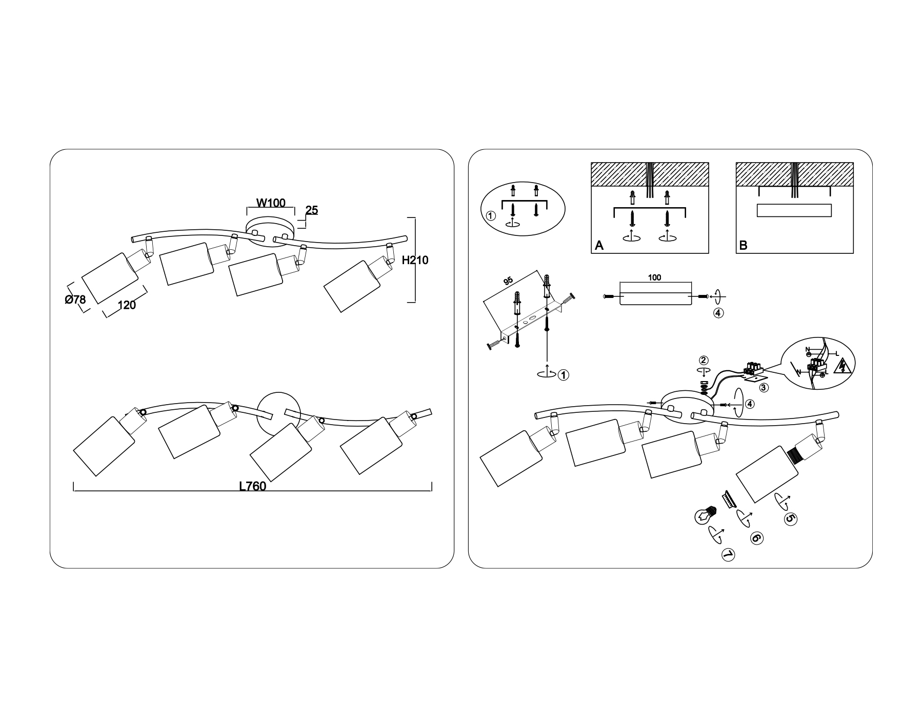 - Количество плафонов: 4
