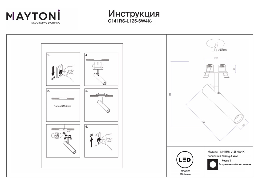 Данную модель C141CL-L125-6W4K-BBS с быстрой доставкой спешите купить по цене 2 262 ₽ в магазине 220svet.ru