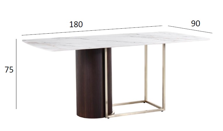 Столешница изготовлена из глянцевого керамогранита с мраморным узором, и обладает высокими характеристиками износостойкости, что является несомненным преимуществом для обеденного стола. Особенностью этой модели является сочетание трех фактур - белой столешницы с мраморным узором и золотого основания с отделкой из натурального шпона, а также асимметрия основания. Все в этой мебели говорит о высоком статусе и безупречном вкусе. Garda Decor предлагает купить современный обеденный стол, а также стулья или кресла, которые дополнят его и составят достойную компанию.