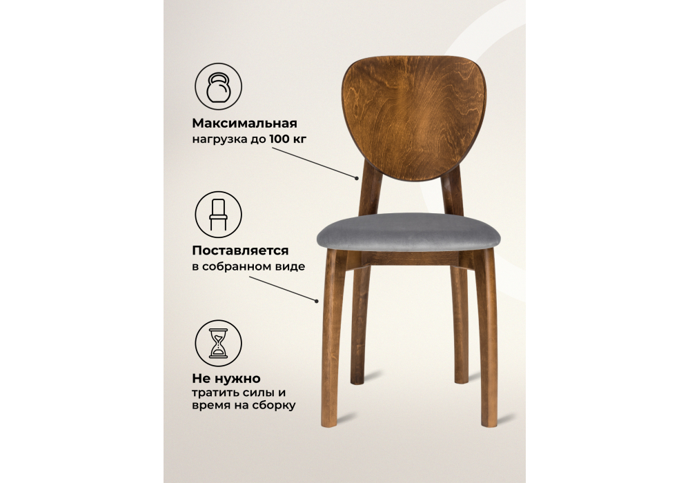 Материал каркаса - массив дерева; Материал сиденья - ткань; Материал обивки - ткань; Ширина - 44; Глубина - 50; Высота - 85; Ширина сиденья - 42; Глубина сиденья - 42; Высота сиденья - 46;