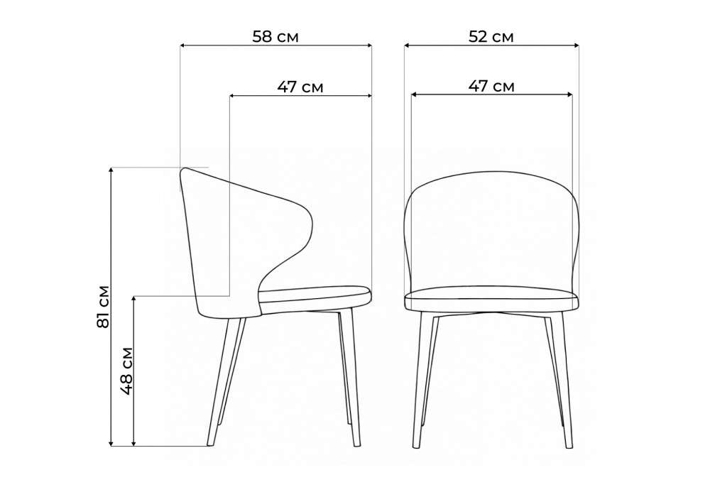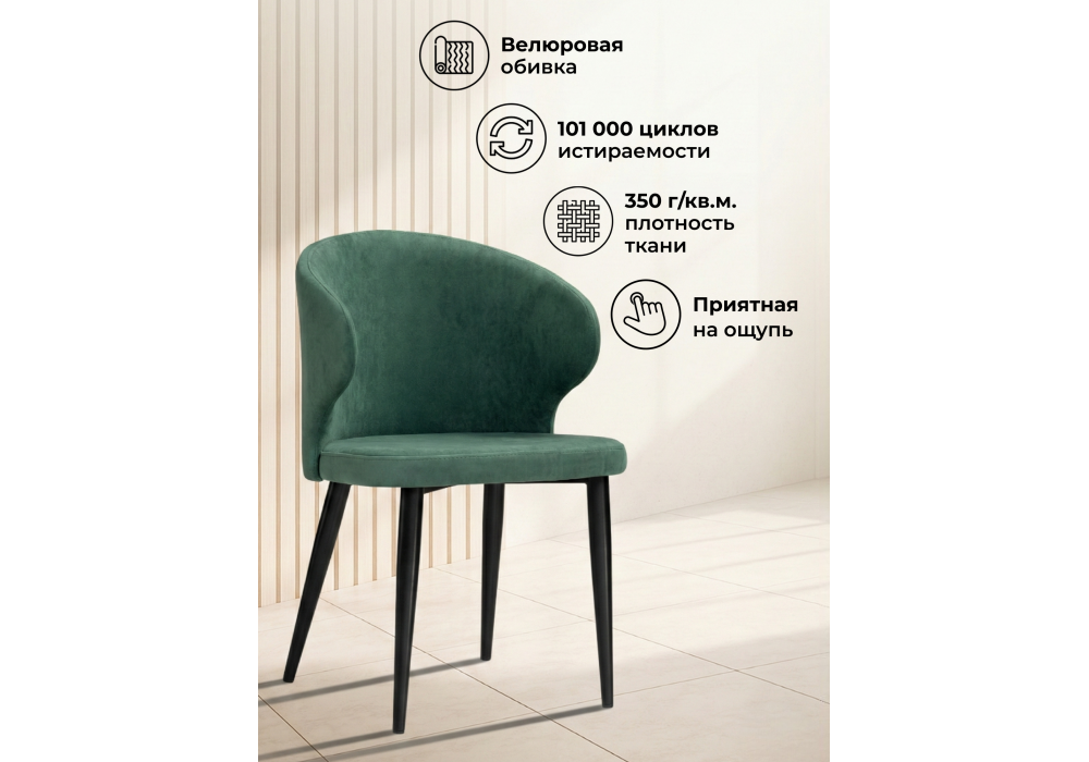 Материал каркаса - металл; Материал сиденья - велюр; Материал обивки - велюр; Цвет ножек - черный; Ширина - 52; Глубина - 58; Высота - 81; Ширина сиденья - 47; Глубина сиденья - 47; Высота сиденья - 48;