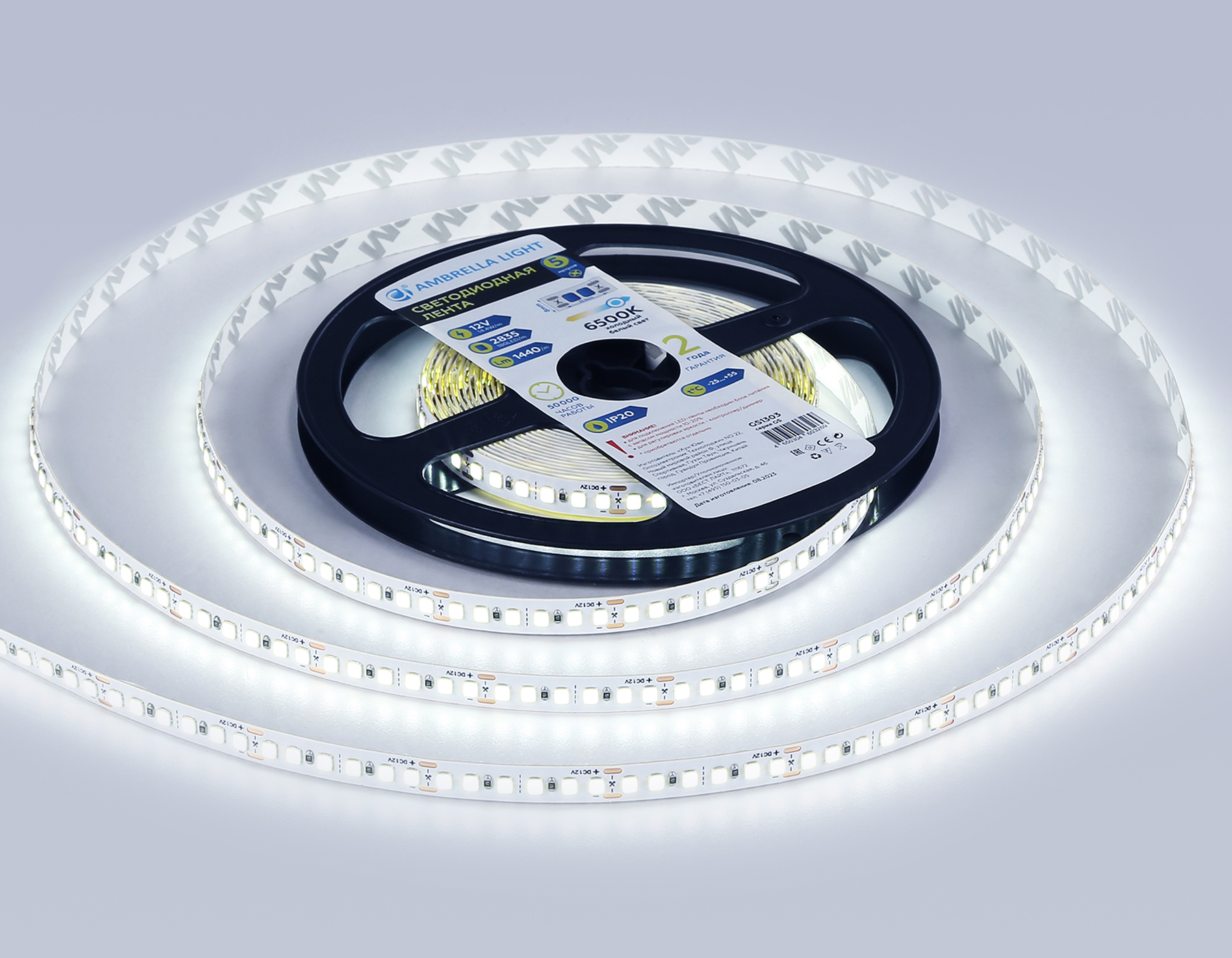 Светодиодная лента 14. 4W m/12V 6500K 5m Ambrella light LED Strip 12V GS1313 в Зеленодольске
