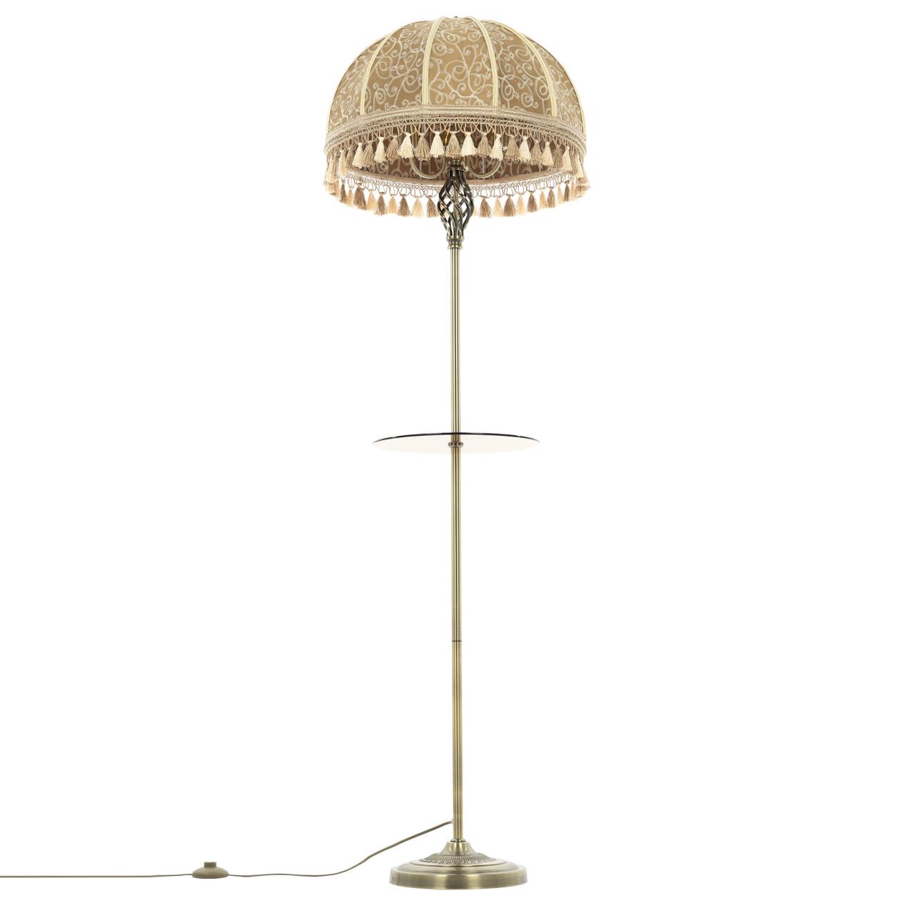 Великолепный торшер со столиком Citilux Базель CL407935T выполнен в классическом стиле. Корпус металлический, благородного бронзового цвета. Устойчивое основание украшено искусным орнаментом, верхняя часть стойки с красивым витым декоративным элементом. Абажур тканевый цвета капучино, декорирован оригинальной вышивкой и обшит бахромой. Удобный круглый столик изготовлен из закалённого тонированного стекла.