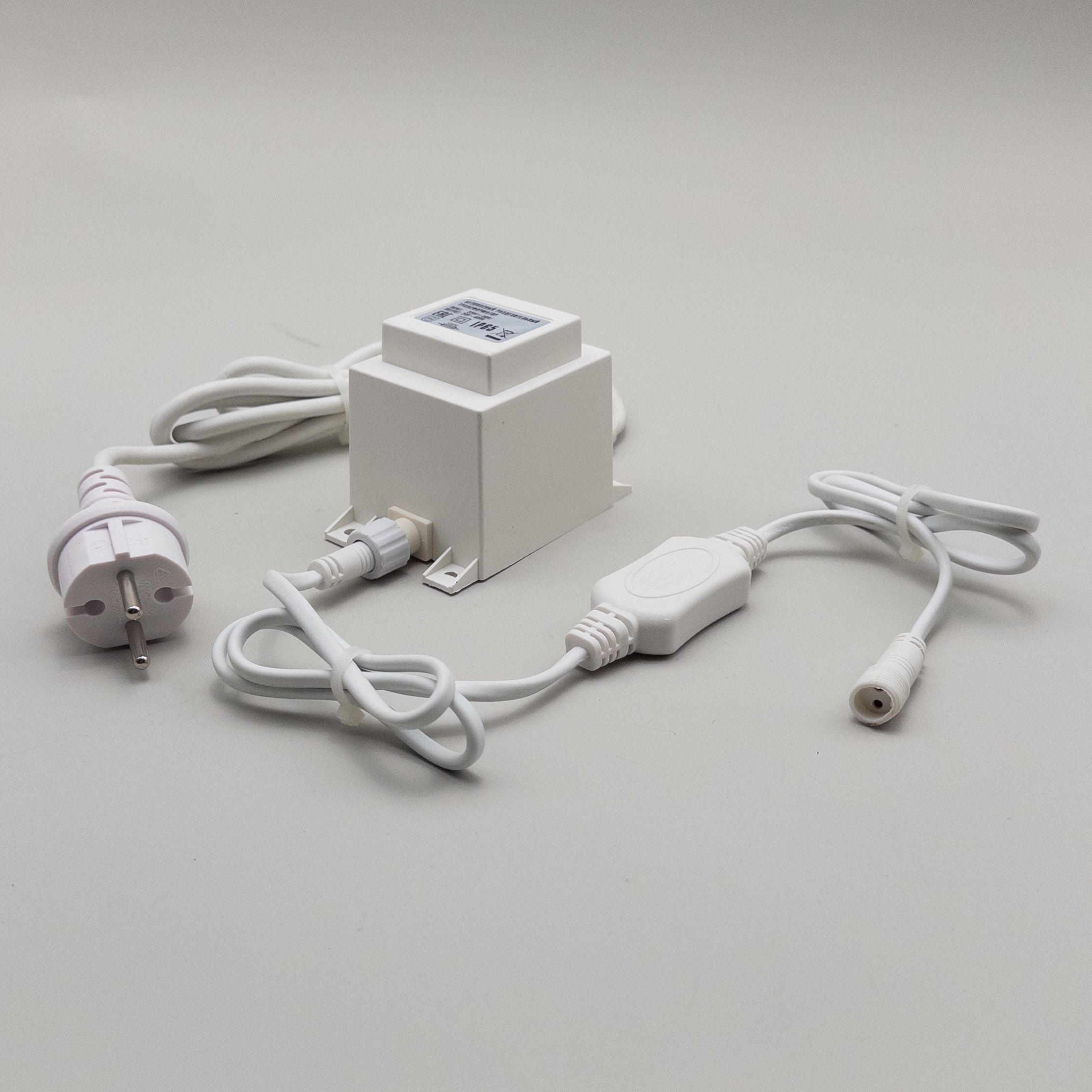 Трансформатор 60W с Выпрямителем для Нитей 24В, до 1000 LED, Провод Белый Каучук, IP65 LTC PTR60-3A-W в Зеленодольске