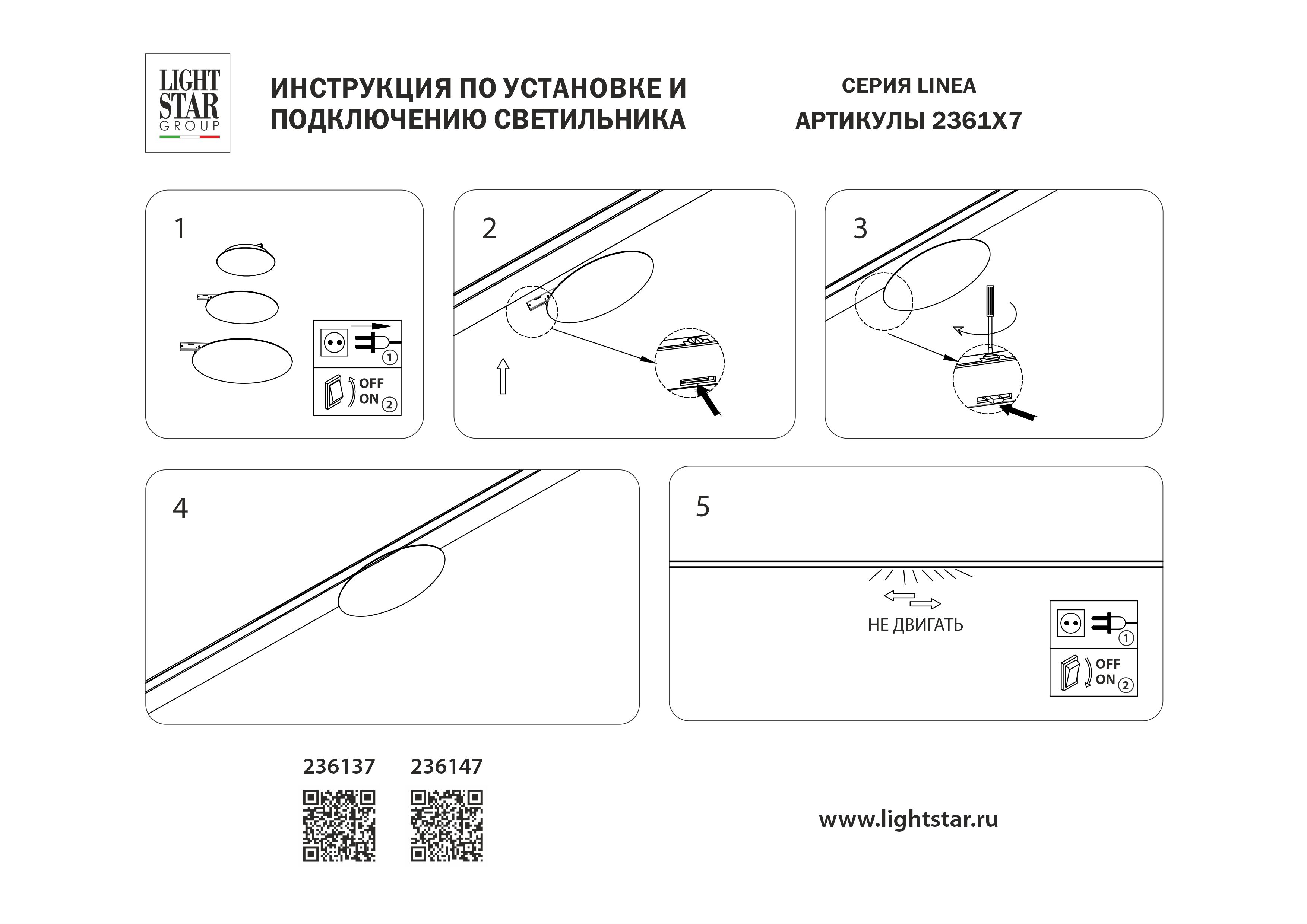 Купить "Трековый однофазный светильник 24V 5W 200° 3000K Lightstar Linea 236137"