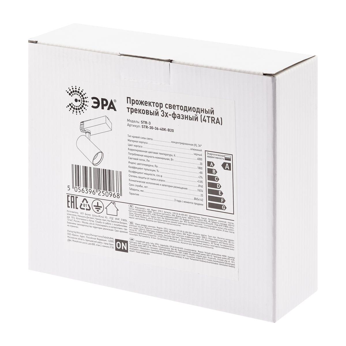 Купить "Трековый светодиодный светильник ЭРА SТR-30-36-40K-B20 Б0049763"