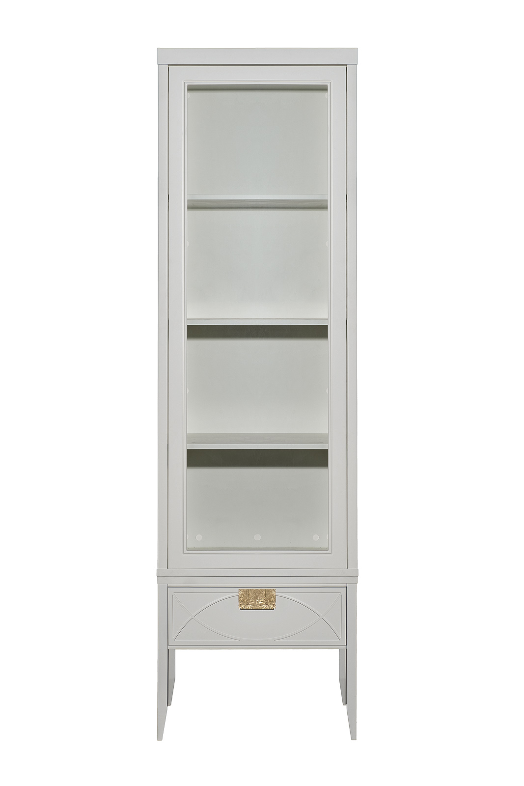 Дизайнерская тумбочка в стиле ар-деко - авторская разработка студии Garda Decor. Бежевый матовый фасад украшен объемным дугообразным декором и широкими рельефными ручками золотого цвета (матовое золото). Выдвижной ящик прекрасно подойдет для домашней аптечки, хранения белья, щеток, косметики и прочих мелочей. На просторной столешнице будет прекрасно выглядеть одна из настольных ламп в стилистике ар-деко, ассортимент которых широко представлен на нашем сайте. Тонкие ножки придают конструкции легкость и изящество. Эксклюзивная тумбочка станет гармоничным дополнением интерьера спальни, гостиной или прихожей. На фото на сайте тумба прикроватная с 1-м ящиком представлена в комплектации с двумя видами шкафов-витрин: арт.151SV-000017(шкаф-витрина открытый узкий), арт.151SV-000015(шкаф-витрина с 1-м стеклянным фасадом). Тумба прикроватная и витрины скрепляются между собой саморезами(в комплекте).