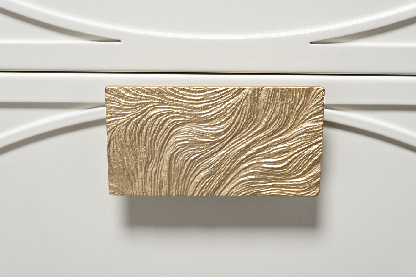 Дизайнерская тумбочка в стиле ар-деко - авторская разработка студии Garda Decor. Черный матовый фасад украшен объемным дугообразным декором и широкими рельефными ручками золотого цвета (глянцевое золото). Два выдвижных ящика прекрасно подойдут для домашней аптечки, хранения белья, щеток, косметики и прочих мелочей. На просторной столешнице будет прекрасно выглядеть одна из настольных ламп в стилистике ар-деко, ассортимент которых широко представлен на нашем сайте. Тонкие ножки придают конструкции легкость и изящество. Эксклюзивная тумбочка станет гармоничным дополнением интерьера спальни, гостиной или прихожей.