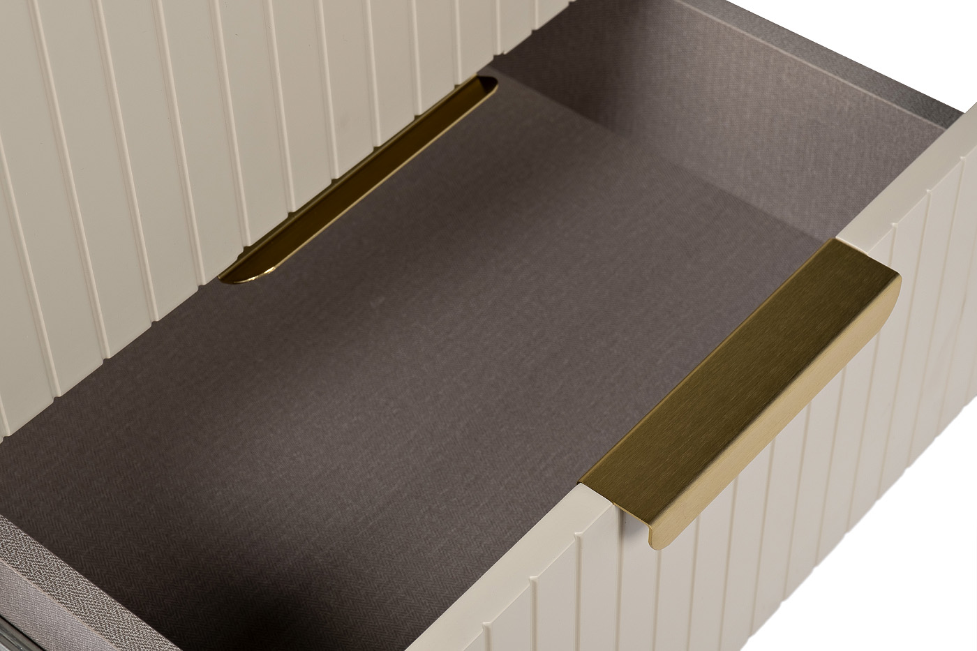 Тумбочка в светло-бежевом оттенке подходит для современных интерьеров и сможет гармонично вписаться в любое помещение за счет своих небольших размеров и аккуратной формы. Обтекаемые формы, тонкие ножки и минималистичные ручки на двух выдвижных ящиках делают изделие достойным представителем трендовой мебели. Качественный МДФ, из которого выполнен фасад изделия, обеспечивает долгую эксплуатацию. Благородства и стиля изделию придают металлические элементы в золотом оттенке.