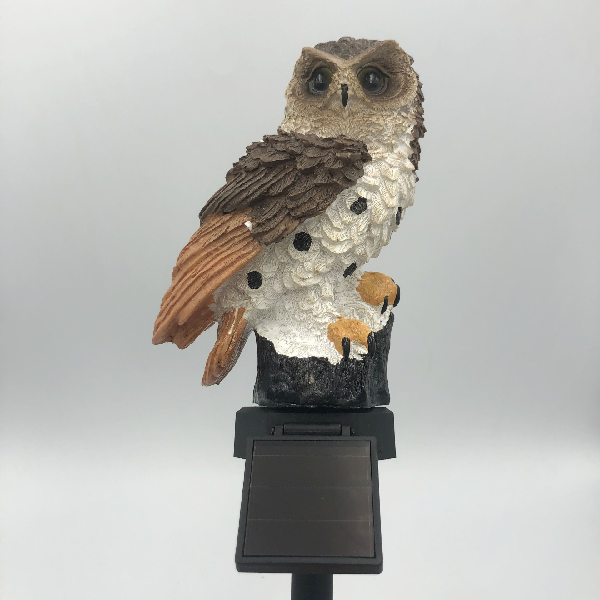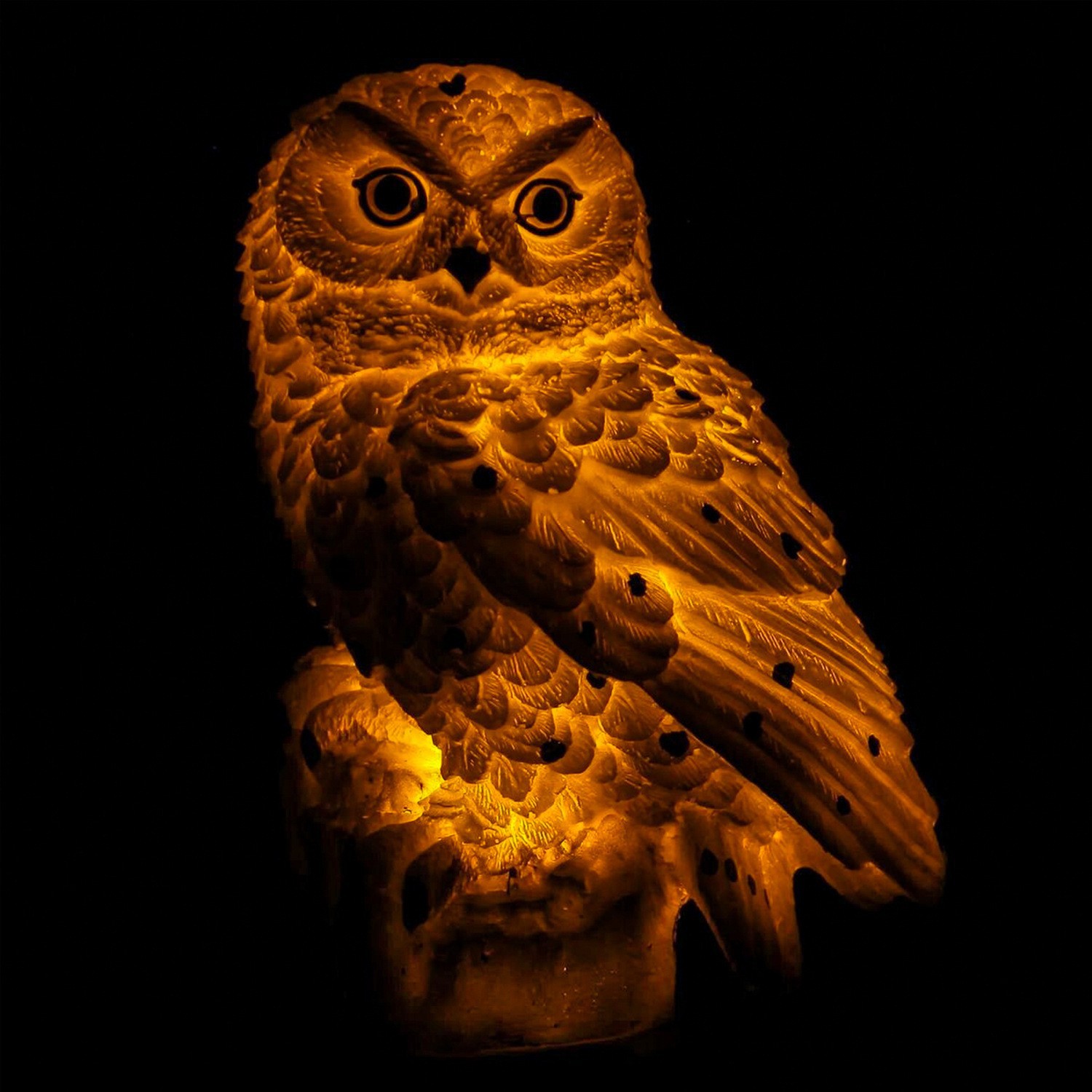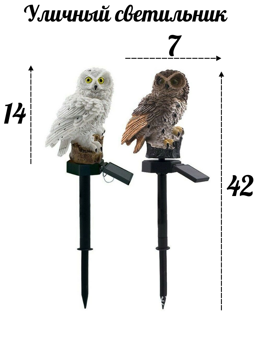Дизайн выполнен из высококачественного абс- пластика и полистоуна, устойчивого к атмосферным воздействиям. Цветовая температура светильника составит 2700К . Перья совы детально проработаны, а глаза выполнены из светопропускающего материала, создавая мягкий, уютный свет.