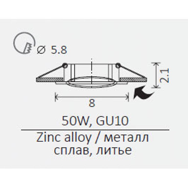 - Диаметр врезного отверстия: 58 мм (5.8 см)