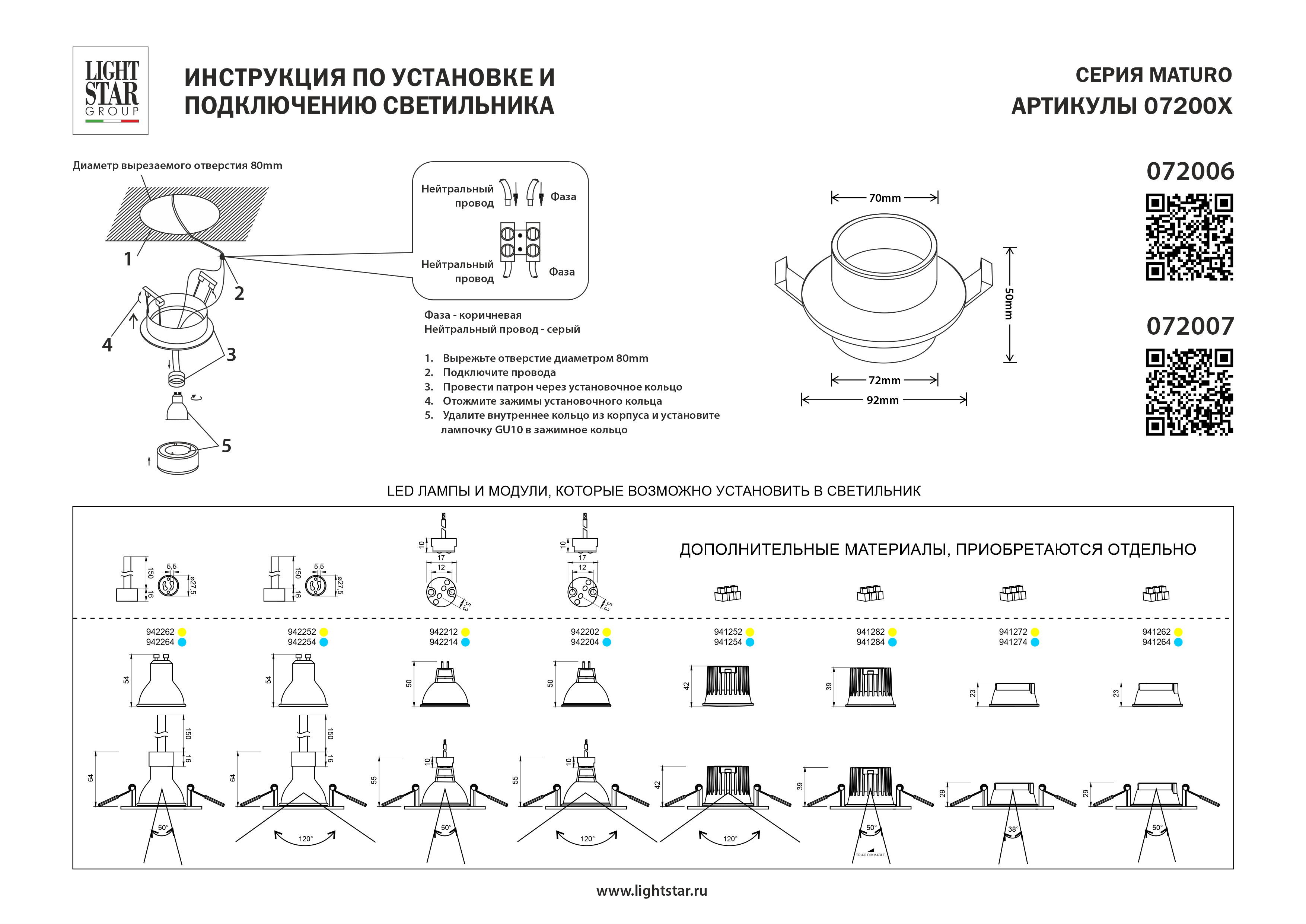 Купить "Встраиваемый светильник Lightstar Maturo 072006"