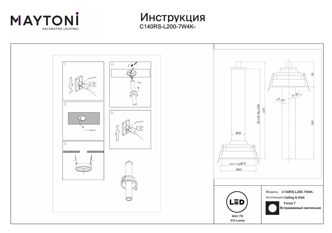 Все характеристики C140RS-L200-7W4K-BBS