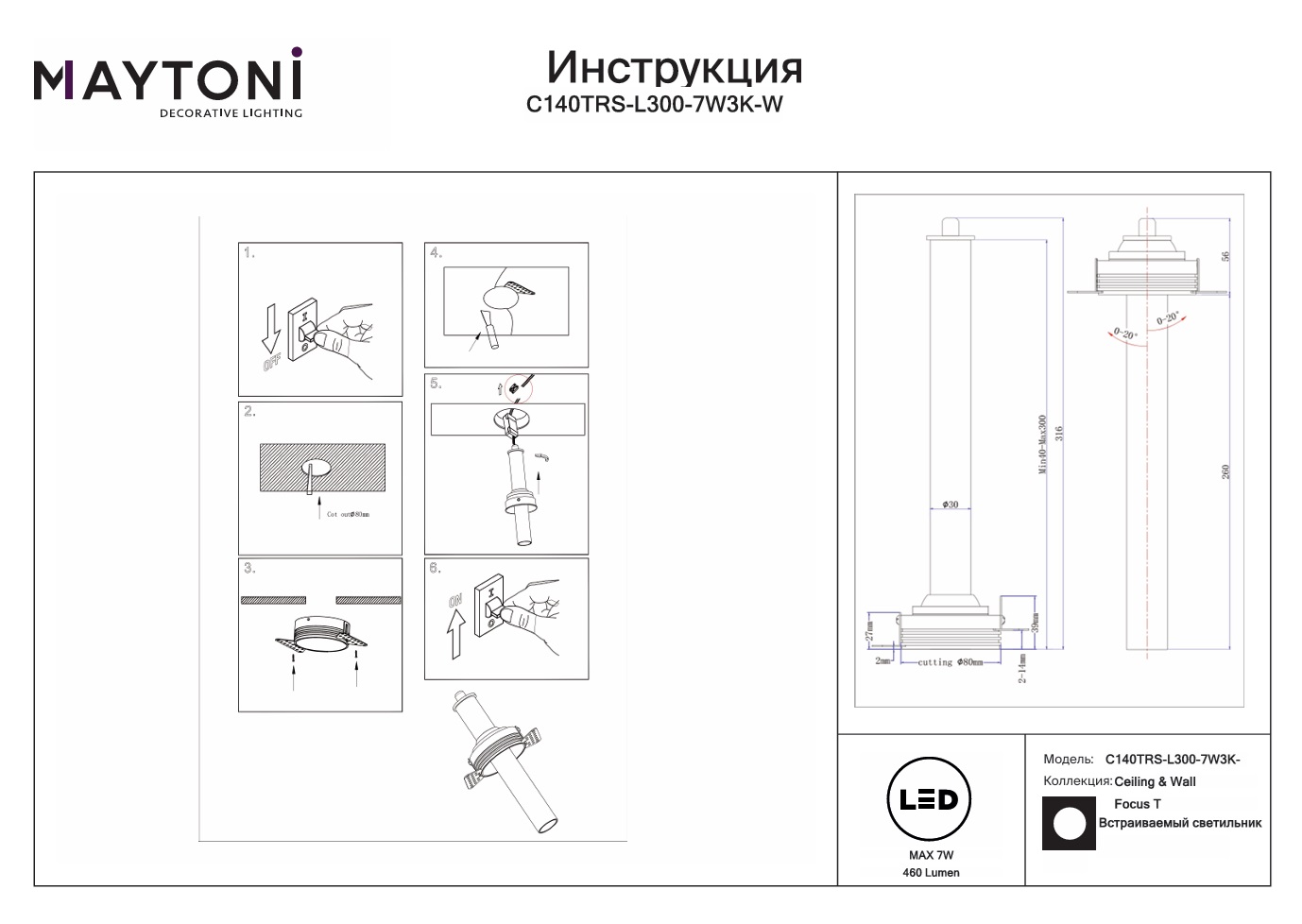 Все характеристики C140TRS-L300-7W3K-W